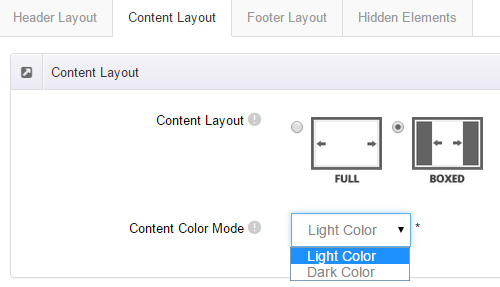 This skin contains Full Layout and Boxed Layout, you can set through Content Layout section.