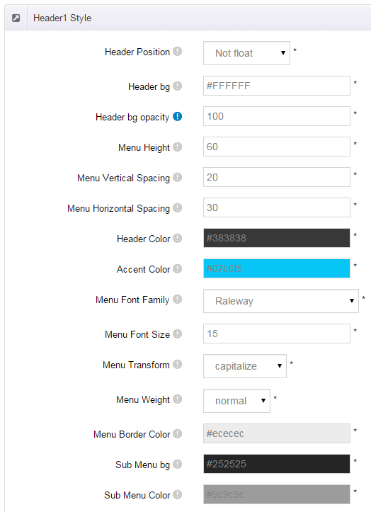 Each header includes very rich setting options, you can modify the color of whatever you would like to . For example: text color, font size and background color etc.