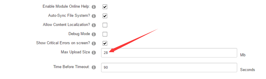 Go to Settings –> Security –> More, and select the tab MORE SECURITY SETTINGS, changing Max Upload Size to 28 or higher.